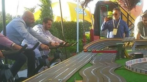 Un Circuit Electrique De Petites Voitures Alimente Par Des Velos D